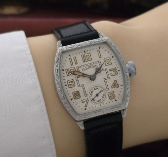 The Illinois Watch Company is, without question, one of the jewels in the crown of American Watch Houses. Organized in Springfield, Ill. shortly after the Civil War, the company turned out during its 58-year run some of the most magnificent timepieces ever to come to light in this country. Pocket watches with names such as "Bunn Special," "Sangamo Special" and "Diamond, Ruby, Sapphire" and wristwatches such as the "Piccadilly," "Marquis" and "Speedway" — all went from innovation, to wide reception to legend. Illinois was farsighted enough to be one of the first American manufacturers to chase the silly idea of marketing a wristlet for men. Having made "convertible wristlets" for women, which could be used as a pendant, hung from a pin or worn with a cord or chain around the wrist, Illinois saw the rabid reception that wristlets received during WWI and felt the time had come for expanded wristwatch manufacturing. Illinois Watch Company, known for their obsessive attention to detail, produced watches that were exciting, elegant, and extraordinarily well-crafted. Today these watches are prized by collectors and designers for their look and reliability.